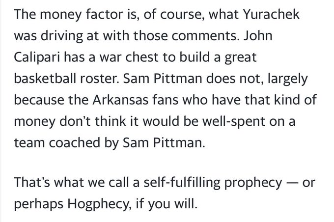I think Yurachek’s seat would be pretty hot if the Hogs end up at this point, but I do think there are some good coaches here. Most would probably not elevate the program, and it’s possible that none of these can unify the donors.