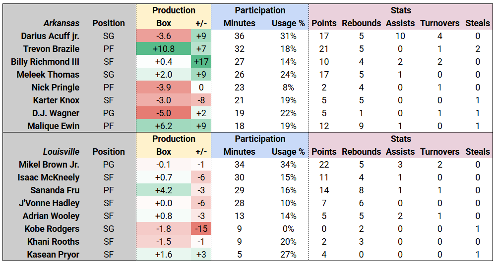 Box Score Breakdown: Arkansas 89, Louisville 80