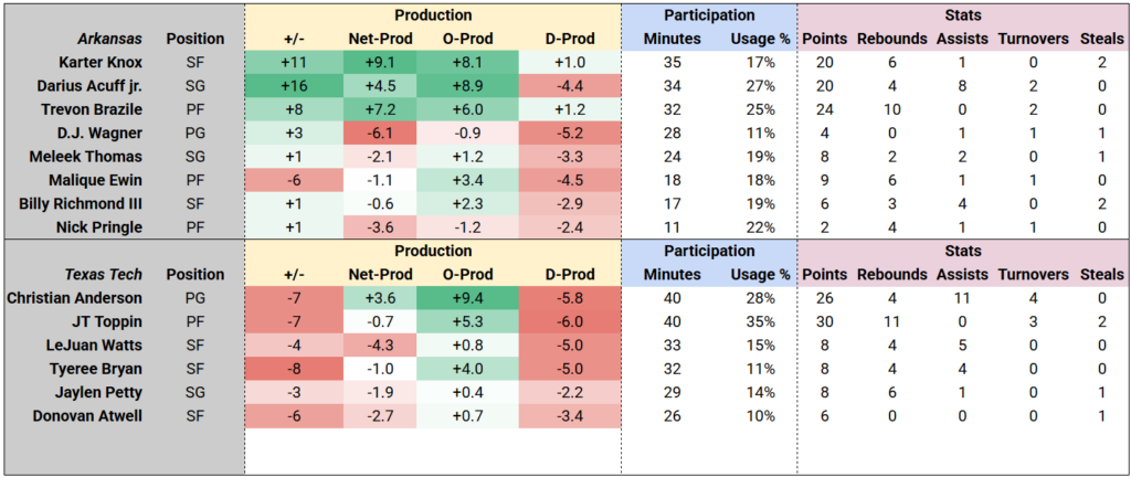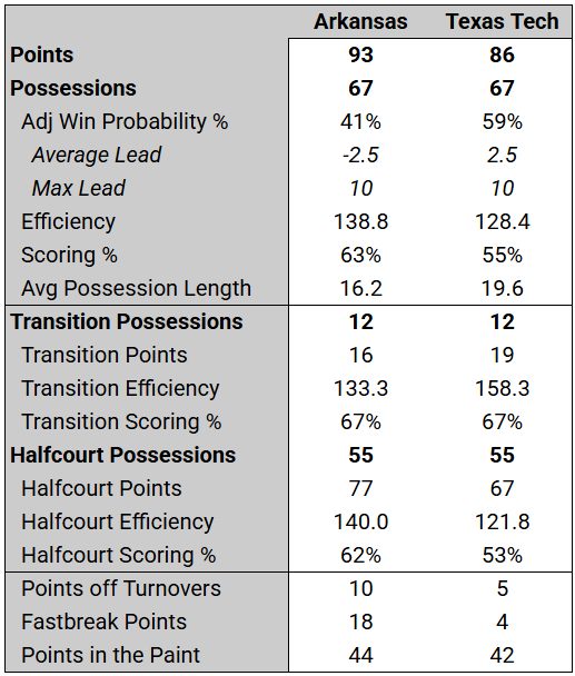 - Box Score Breakdown: Arkansas 93, Texas Tech 86